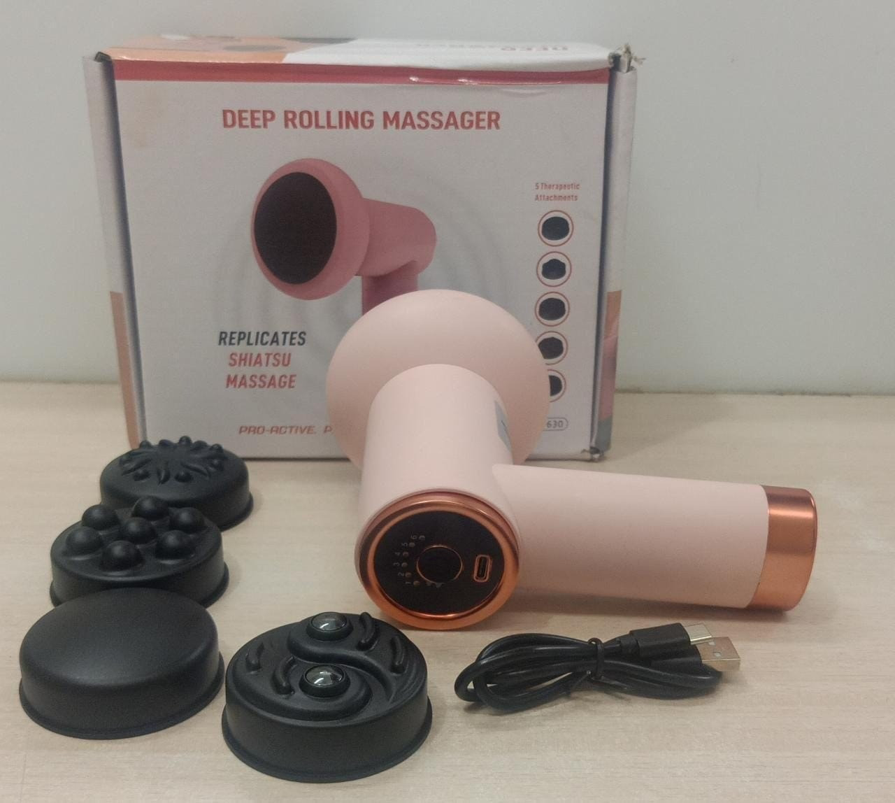 এতে রয়েছে ৫টি ভিন্ন ধরণের হেড, যা বিভিন্ন ম্যাসাজ পয়েন্টে ব্যবহার করা যায় – ঘাড়, কাঁধ, পিঠ, কোমর, পা, এবং হাতসহ সমস্ত শরীরে। রিচার্জেবল ব্যাটারির মাধ্যমে এটি সহজেই ব্যবহারযোগ্য, এবং একবার চার্জে অনেক সময় চলতে পারে।