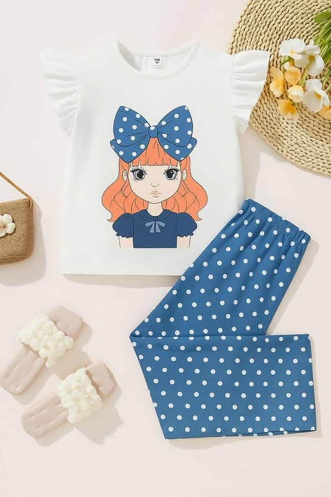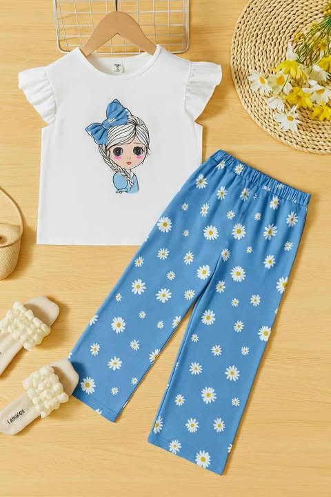 Kids Ladies Long T Shirt & Pant Set Fabric