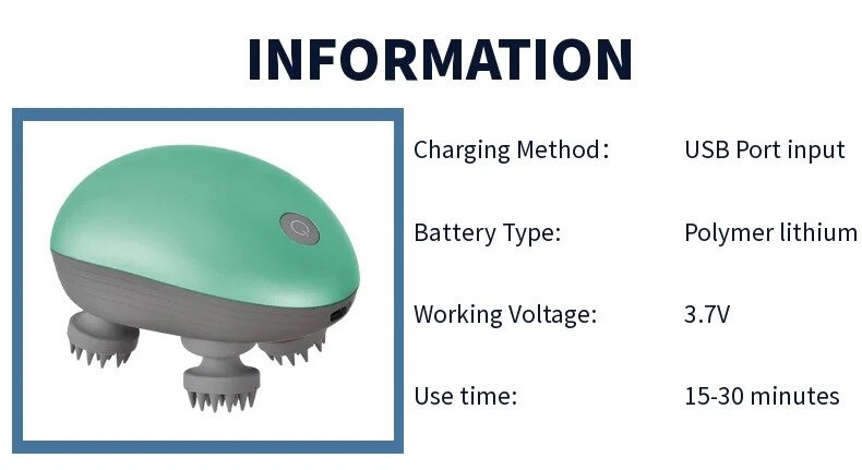 এই ইলেকট্রিক স্ক্যাল্প ম্যাসাজারটি মাথার চুল পড়া রোধ ও রক্ত সঞ্চালন বাড়াতে কার্যকর।৪টি রোটেটিং ম্যাসাজ হেড চুলের গোড়ায় নরমভাবে ম্যাসাজ করে।ব্যবহারে স্ট্রেস দূর হয় ও মানসিক প্রশান্তি পাওয়া যায়।ডিভাইসটি রিচার্জেবল – চার্জ দিয়ে একাধিকবার ব্যবহার করা যায়।পোর্টেবল ডিজাইন – বাড়ি বা ভ্রমণেও সহজে ব্যবহার করা যায়।ওয়াটারপ্রুফ ডিজাইন হওয়ায় গোসলের সময়ও ব্যবহারযোগ্য।পুরুষ ও মহিলা উভয়ের জন্যই উপযোগী।চুলের বৃদ্ধি বাড়াতে ও মাথার ত্বক পরিষ্কার রাখতে সহায়ক।সহজ এক বাটনে অন-অফ সিস্টেম।শরীরের অন্যান্য অংশেও হালকা ম্যাসাজের জন্য ব্যবহার করা যায়।